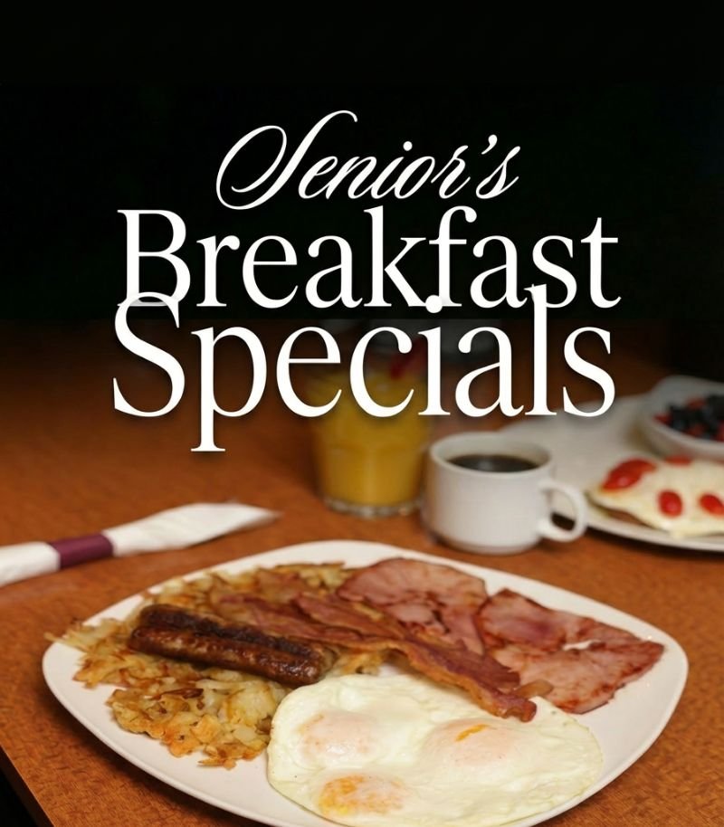 Rise and shine, seniors! Breakfast specials are served for just $9.59 from 7am-11am Monday-Friday!Â